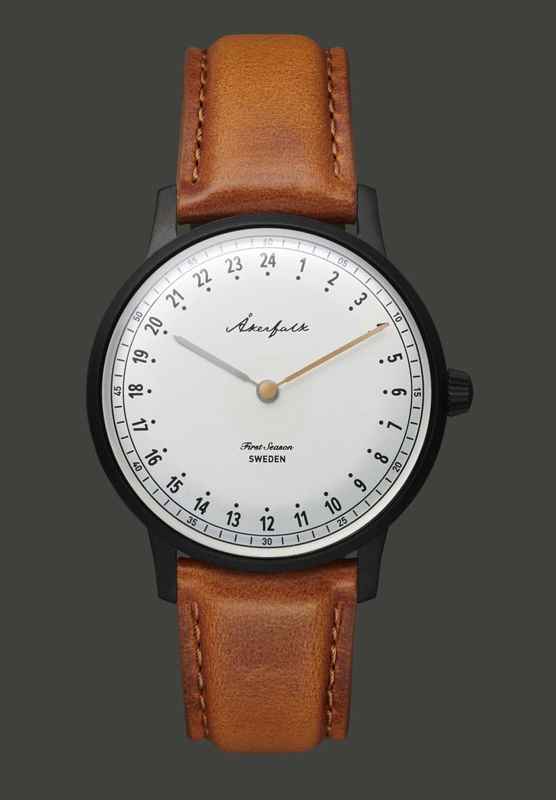 The Akerfalk First Season watch features a case that is a masterpiece of minimalist design, embodying the essence of Scandinavian aesthetic principles. The case is meticulously crafted to showcase sleek lines and an uncluttered, elegant form.